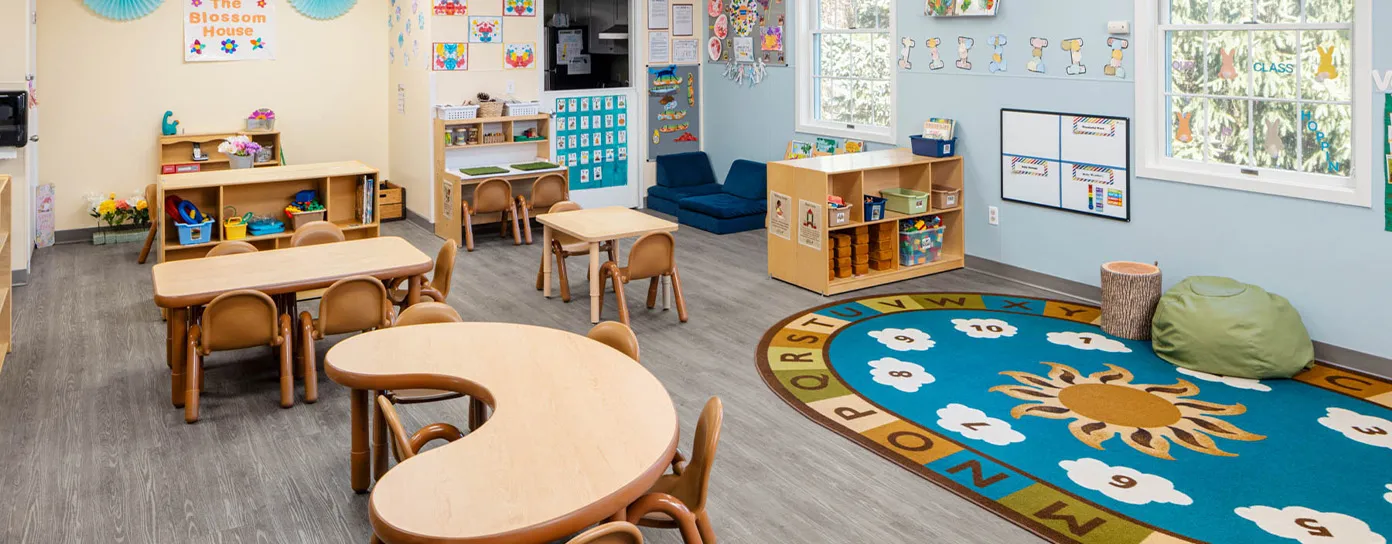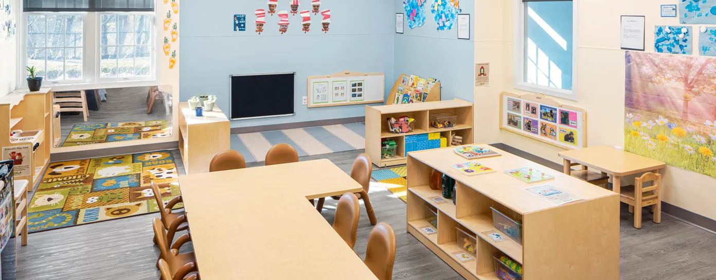Inside, you’ll find a calm, thoughtfully designed space with bamboo floors, natural wood accents, and soothing colors that create a peaceful atmosphere for young learners. Classrooms are bright, open, and arranged to spark discovery, creativity, and connection at every age. Each classroom includes nature centers, cozy areas, and the guidance of long-tenured teachers who help children feel supported, known, and truly at home.