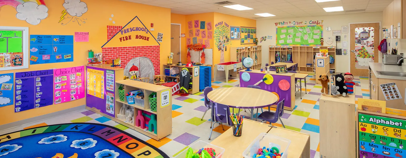Our classrooms follow staffing plans that support individual attention and quality care: Infants: up to 7 children with 2 teachers, Toddlers: up to 9 children with 2 teachers, Preschool/Pre-K: up to 20 children with 2 teachers