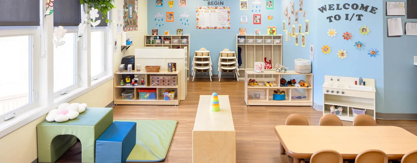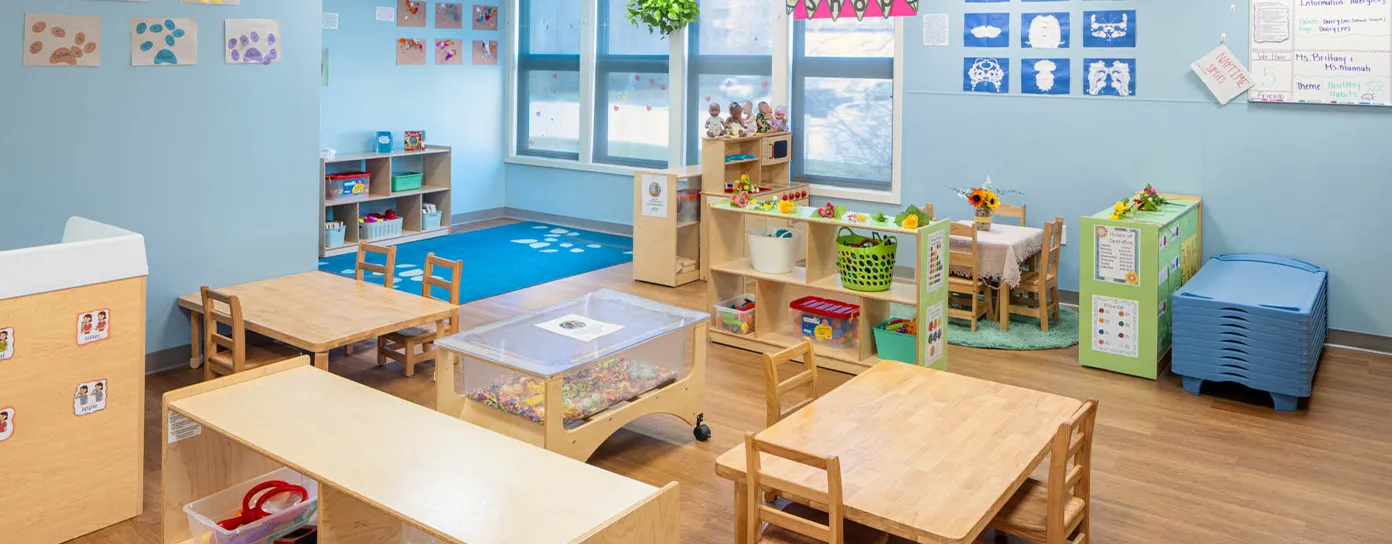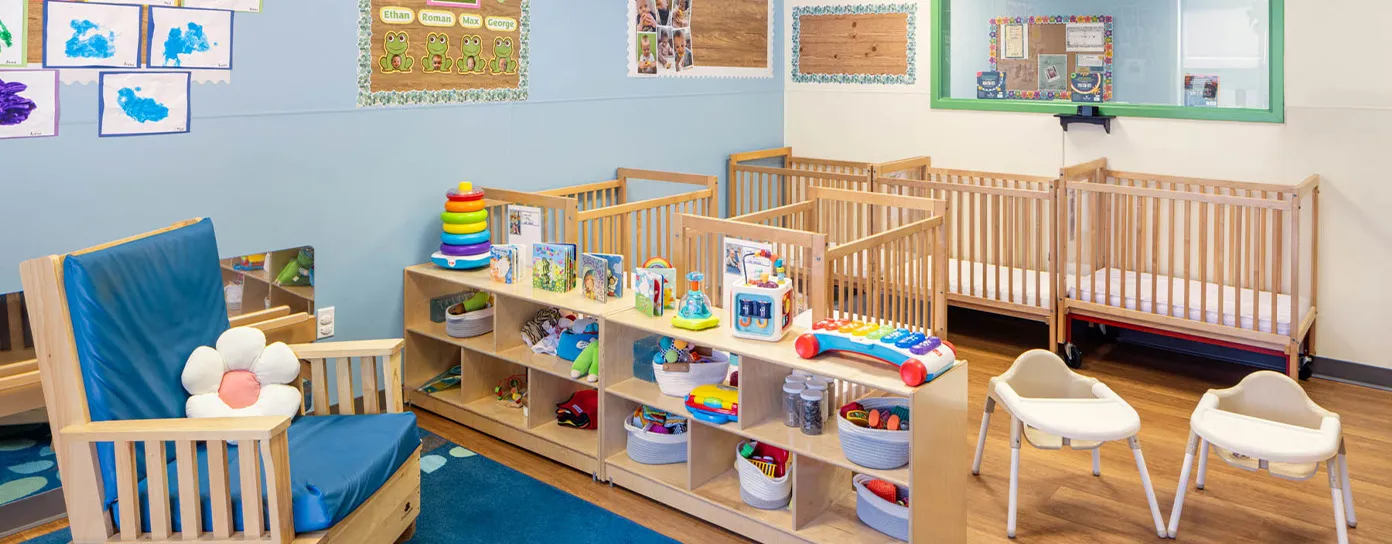Classrooms are intentionally structured to support development across 12 total rooms: Infant classrooms: up to 7 children with a 1:3 teacher-to-child ratio (four infant rooms), Toddler classrooms: up to 9 children with a 1:4 ratio (five toddler rooms), Preschool classrooms: up to 20 children with a 1:10 ratio (three preschool rooms, including one dedicated Pre-K classroom for children 4 and up)