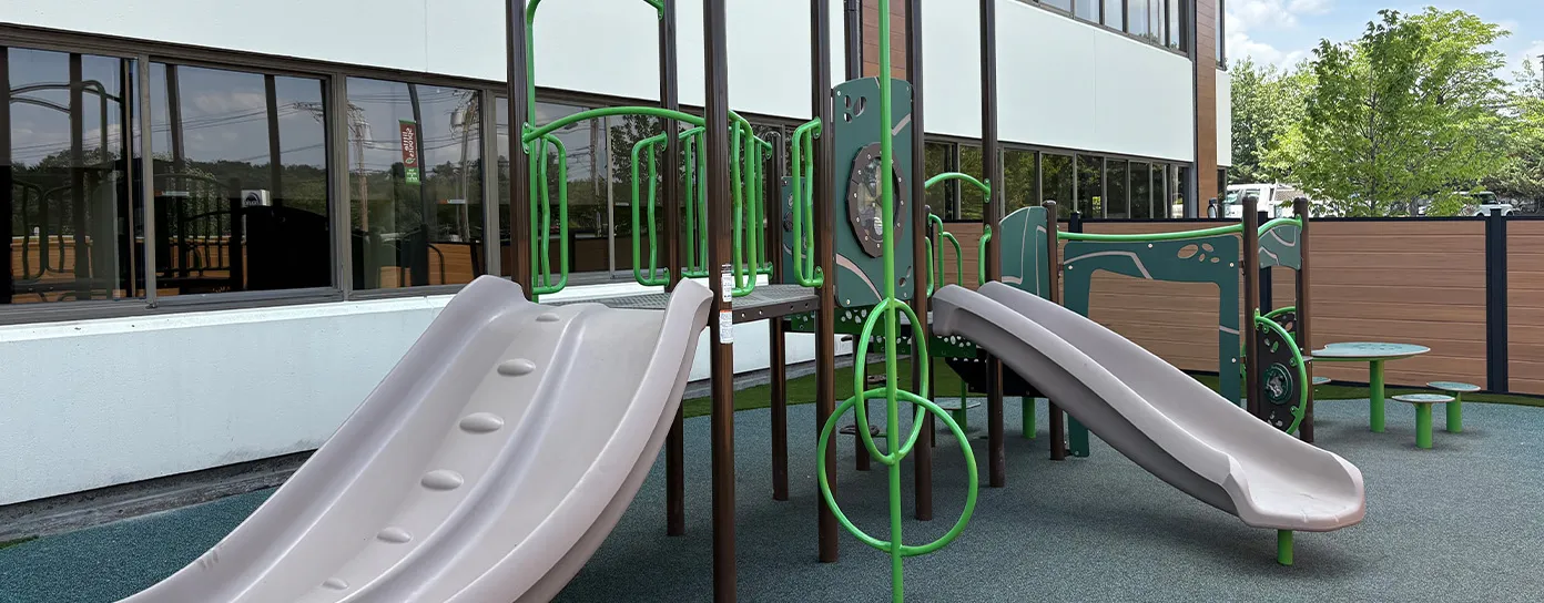 Opened in Summer 2025, our school is located in the state-of-the-art Knowledge Park. Every classroom is bright and spacious, filled with natural light, and designed to support children’s developmental needs at every age. Just outside, private playgrounds give each age group the space to move freely and safely. Inside, our nature-based curriculum inspires curiosity, creativity, and hands-on discovery.