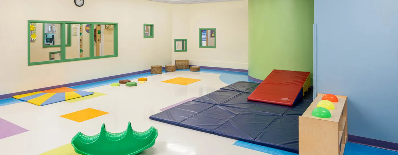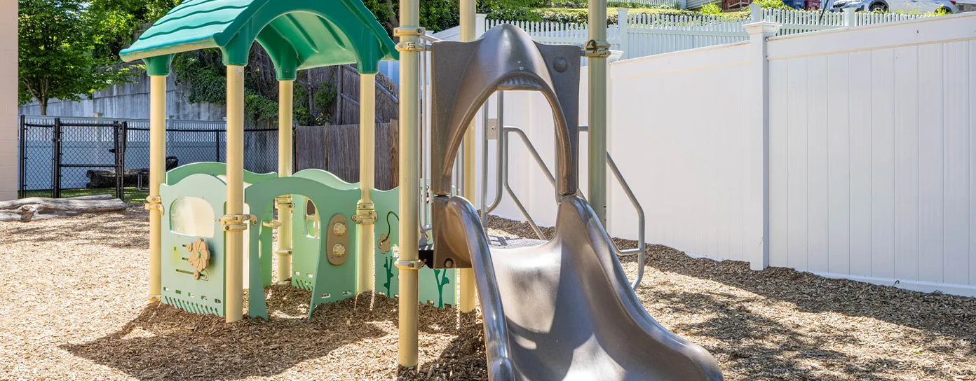 With three private, age-appropriate playgrounds tucked behind the building, children have plenty of room to run and explore. Our indoor gross motor room ensures that even on cold or rainy days, movement and play are part of the routine. Play spaces are arranged intentionally so children can move confidently and engage in activities that match their age and abilities.