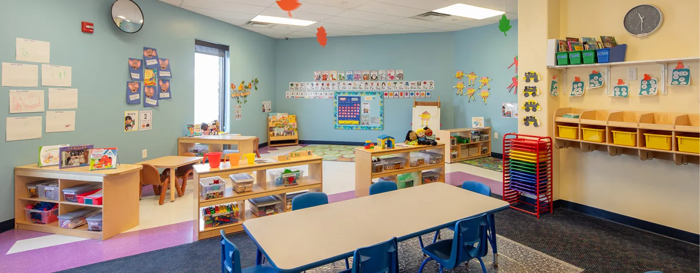 Our Merrimack school is filled with vibrant color, natural light, and thoughtfully designed spaces to spark learning and imagination. From the moment your child walks through the doors, they’ll feel welcomed, supported, and inspired to grow. Classrooms are arranged to encourage exploration, build confidence, and help each child feel a sense of belonging.