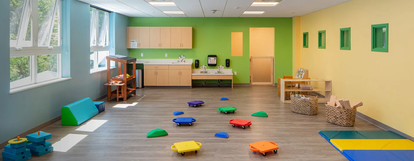 Opened in 2022, our state-of-the-art school was thoughtfully constructed to support every stage of early development. Classrooms are spacious and sun-filled, with large windows that welcome natural light throughout the day. Cheerful colors, soothing finishes, and child-sized furnishings create a calm and inspiring environment where young learners feel safe and encouraged to explore.