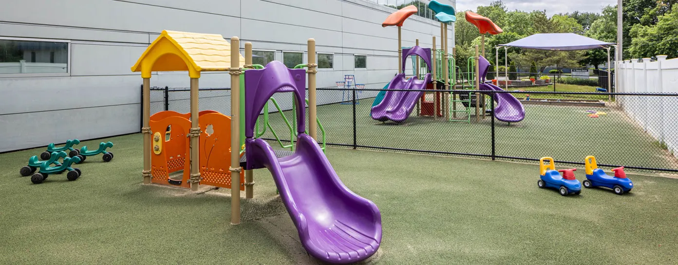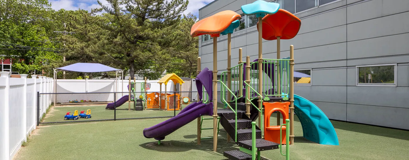 Located on a quiet side street with easy access to Route 9 and the Mass Pike, our Natick daycare center is both peaceful and commuter-friendly. Outside, two private playgrounds offer developmentally appropriate play for toddlers and preschoolers. Infants also enjoy time outdoors with guided buggy rides that let them safely take in the sounds and sights of nature. On colder or rainy days, children can stay active in our indoor play space, which includes access to dedicated gross motor rooms for infants/toddlers and preschool/pre-K learners, each designed to support movement, sensory exploration, and hands-on STEAM activities.